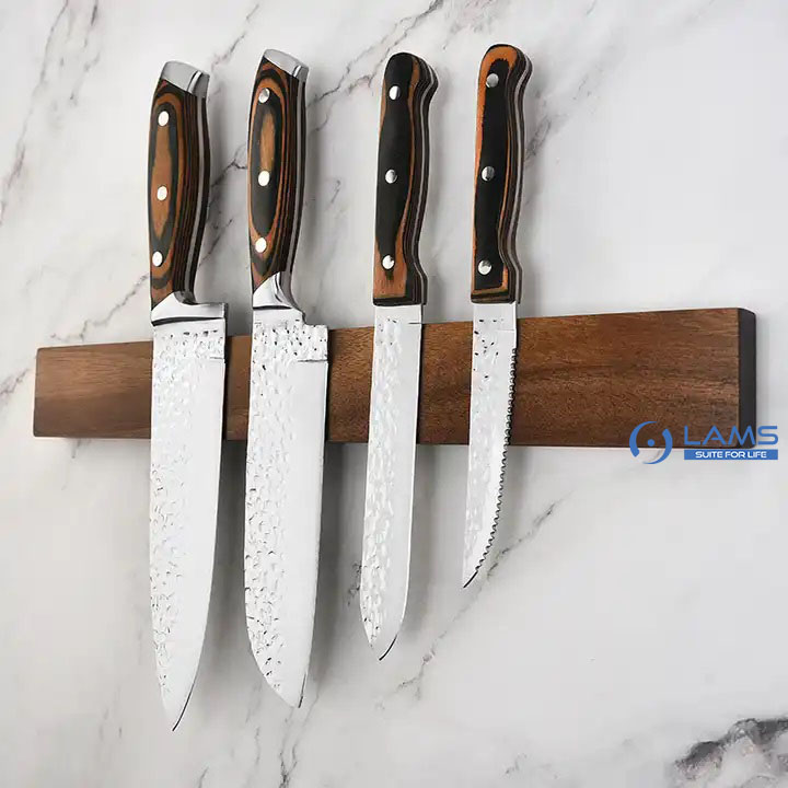 Giá treo dao bằng gỗ acacia tự nhiên với lực hút mạnh dùng nam châm hít là giải pháp lý tưởng cho việc treo dao kéo trong căn bếp của bạn.
