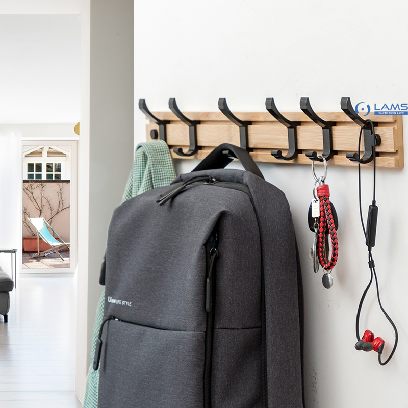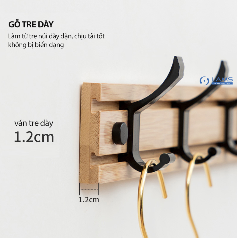 Thanh treo làm bằng gỗ tre; Đây là loại gỗ rất thân thiện với môi trường, gỗ được xử lý chống mối mọt, chống ẩm, chống nước nên có thể sử dụng ở cả những nơi ẩm ướt như phòng tắm, wc.