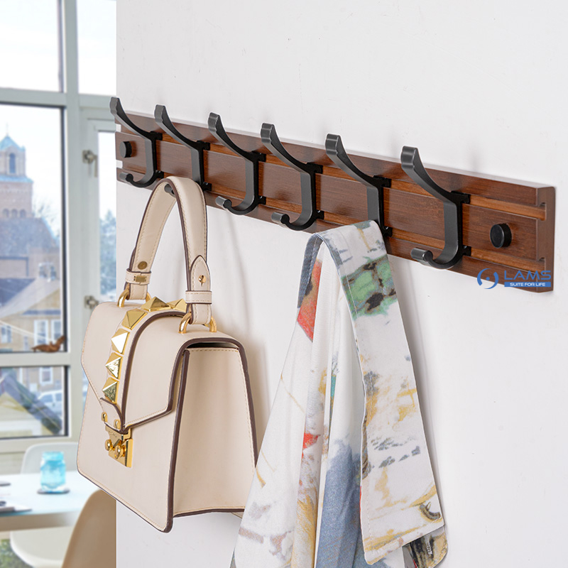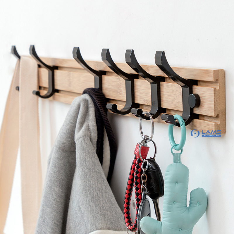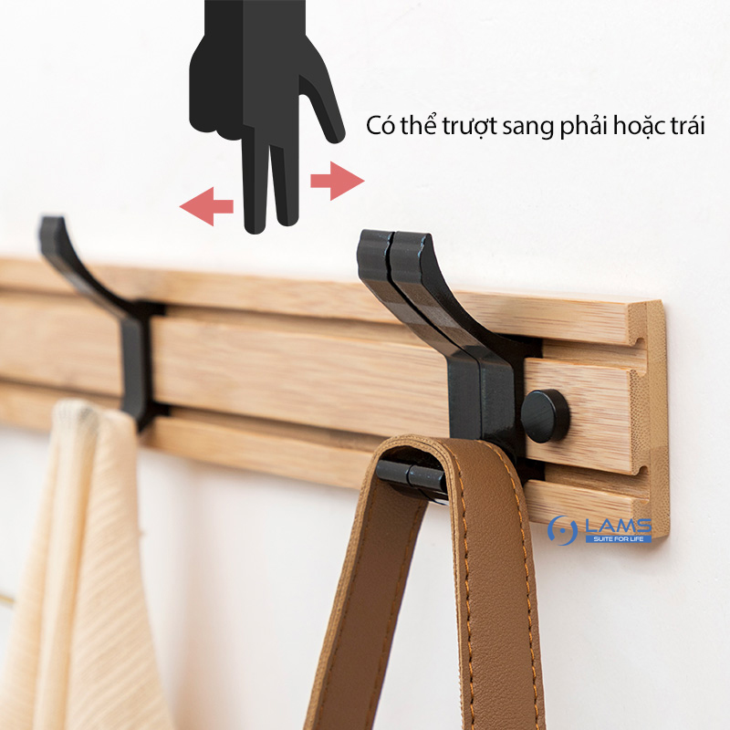 Móc treo quần áo gắn tường bằng gỗ MAC17 có đặc tính nổi bật là các đầu móc có thể di chuyển trượt trên thanh ray, đầu móc dạng móc đôi nên có thể treo được nhiều đồ hơn gấp đôi móc thông thường. \